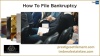 US law allows courts to declare individuals and businesses bankrupt, allowing them to settle debts without full payment. Filing bankruptcy is a legal action asking the court to make this declaration; deciding to file should account for: –Debts that are owed –Assets that could be affected by the decision –Assets that are exempt from the decision, which vary by state. –Eligibility for bankruptcy discharge, based on your means. Some types of bankruptcy, like Chapter 7, include a ‘means test.’ Filing typically involves taking a credit-counseling course, then completing a Bankruptcy Petition with the US Court. Full proceedings will require additional forms and information, and usually at least one meeting with the bankruptcy trustee. The full course of settlement will vary; objections or motions by creditors, winding up of secured debts, and other matters may differ based on circumstances. The final step is completing a debtor education course before the court issues a discharge.
